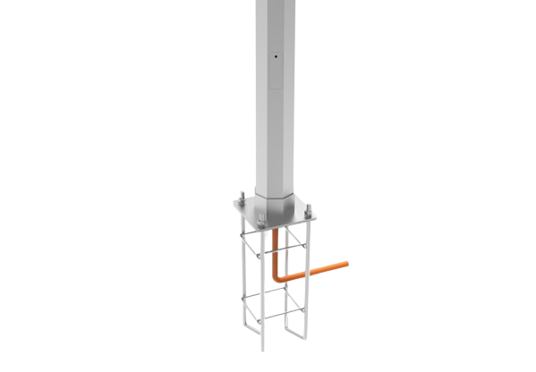 Poste cónico de 8 metros facetado octogonal, ideal para grandes alturas y múltiples proyectores. Alta ingeniería y máxima estabilidad. Fabricado en acero galvanizado en caliente, cumple con las más altas exigencias técnicas y normativas.